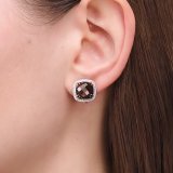 Золотые серьги с бриллиантами природными и кварцами дымчатыми природными