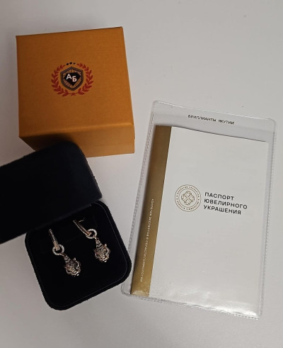 Серьги с 28 бриллиантами природными, 0.09 карат, огранка круг 17 граней, цвет 2, чистота 2, тип огранки А;