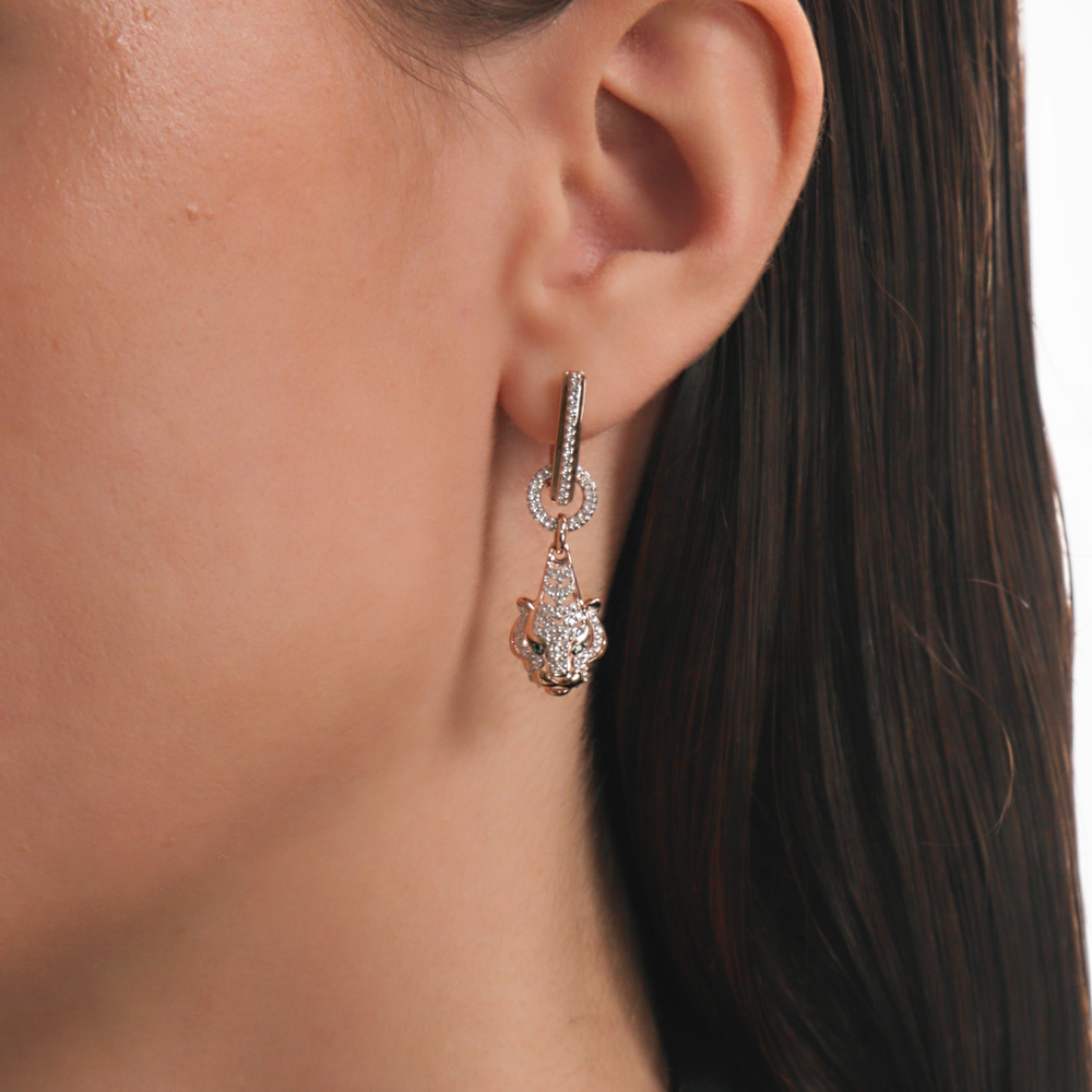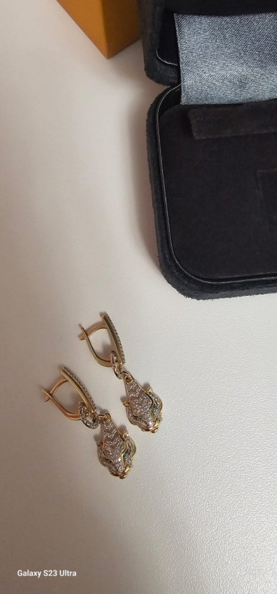 Эти золотые серьги с бриллиантами – воплощение экстравагантной роскоши, внутренней силы, утонченности и мощи. Их дизайн вдохновлен опасным хищником – пантерой, грациозной и таинственной. Ее морда, инкрустированная бриллиантами, символизирует уверенность и самодостаточность, а изумрудные глаза излучают магическую силу и притяжение. Золотая оправа подчеркивает изысканность форм, а сверкающие бриллианты создают игру света, которая притягивает взгляды.