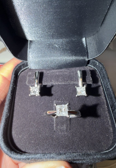 Красивые, хороший замочек, из ушка не вываливаются. На моем высоком проколе сидят отлично, не поджимают. Камни по 0,52 карата с характеристиками 1/2, огонь! Смотрела на них давно, когда еще можно было дешевле купить, но сейчас хоть и подорожали, все равно приобрела, уж очень хорошие ))