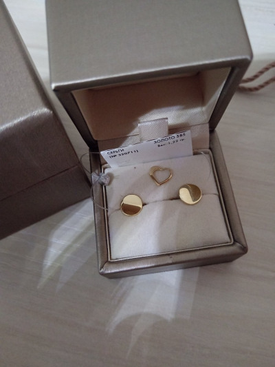 Хорошие пусеты в лимоном золоте, на тонкую мочку уха, взяла ещё подвеску к ним, посмотрим как будут в носке 👌