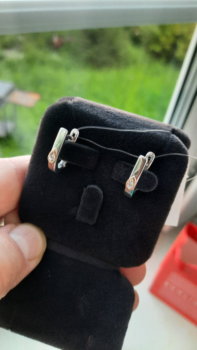Серьги с 2 бриллиантами природными, 0.006 карат, огранка круг 17 граней, цвет 2, чистота 2, тип огранки Б;