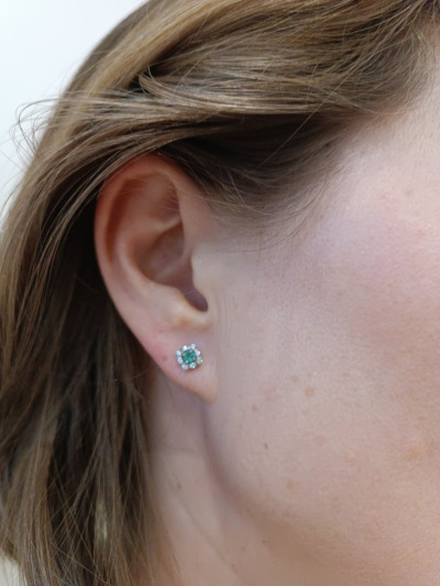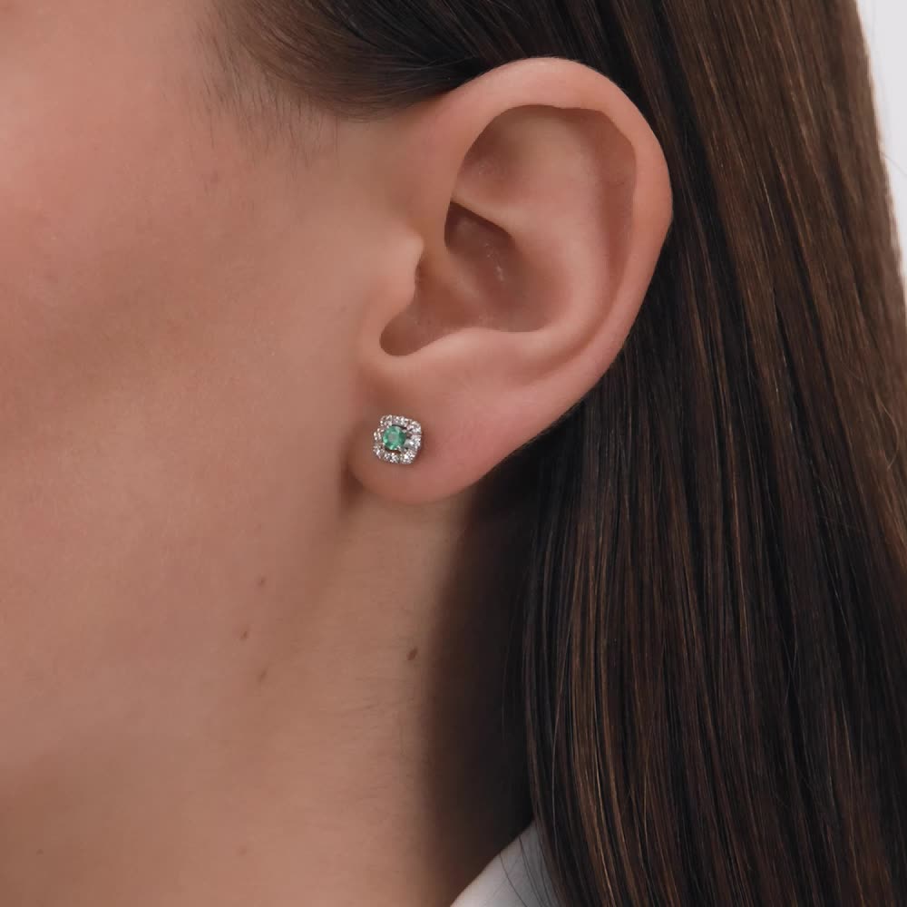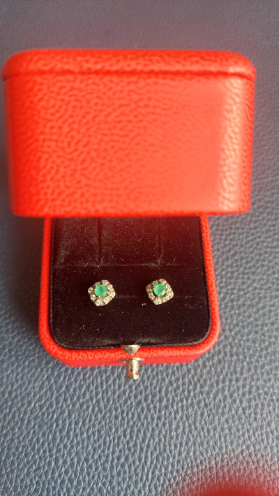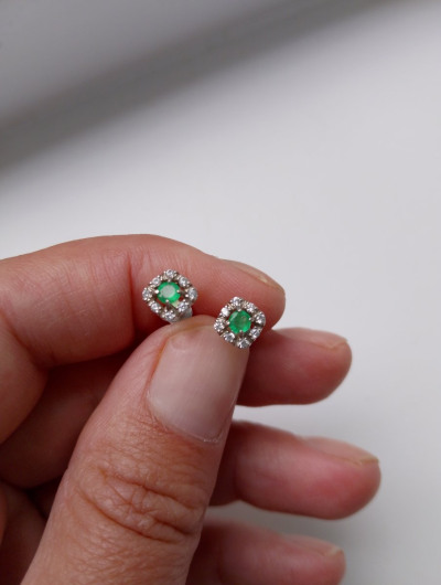 Серьги с 2 изумрудами природными, 0.19 карат, цвет 3, чистота 3, тип огранки В;