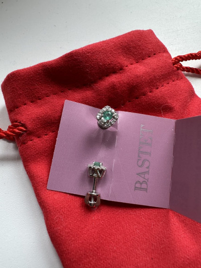 Серьги с изумрудами. Надёжный замок. На ухе не чувствуются. .