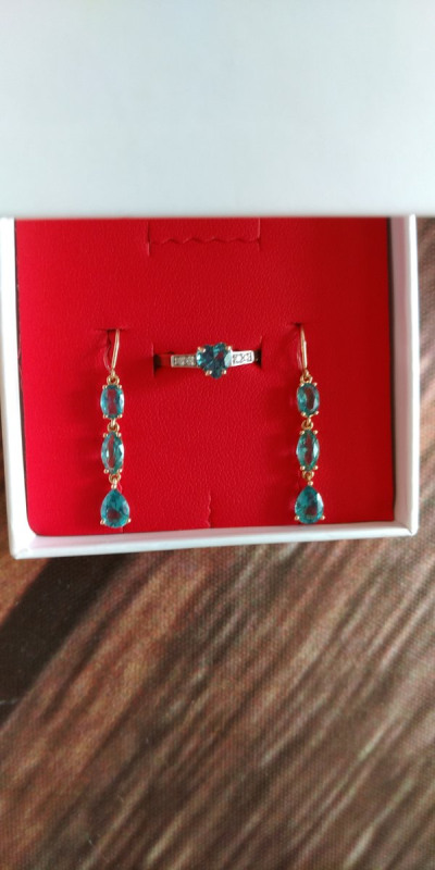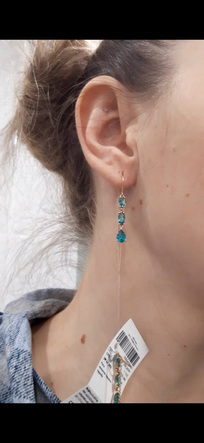 Ох, что за прелесть этот камень! Так заворожил! Заказала онлайн, выкупила. Камень прям переливается цветом от голубого к зелёному. У меня есть такие же с топазом, очень удачная модель. Поэтому выкупила с турмалином не задумываясь. Но спустя неделю примерив дома поняла, что почти однотипный цвет. И турмалин для меня лично слишком яркий камень, я поскромнее обычно ношу) Поэтому воспользовавшись гарантийным сроком обменяли на денежный сертификат. Но при этом бирку не срезав. Могу сказать магазин очень добросовестный: гарантия на изделия работает 100%. Благодарю, Sunlight !