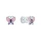 Аккуратные серебряные серьги-пусеты в форме бабочек с нежной сиренево-розовой эмалью и сверкающим фианитом огранки маркиз оттенка под аметист. Аккуратная модель сережек-пусет с закручивающейся застежкой порадует как маленьких модниц, так и взрослых любительниц миниатюрных украшений. Милая форма понравится и бунтующим подросткам, предпочитающий украшения в стиле кавай и аниме. В комплект можно подобрать колечко или подвеску.