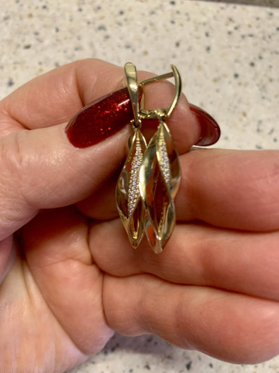 Стильные, необычные, желтое золото и фианиты играют и привлекают внимание. Я очень люблю их .