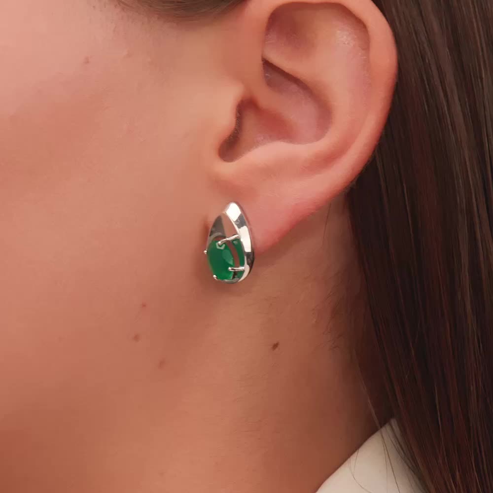 Серьги с 2 хризопразами, тип огранки Б;