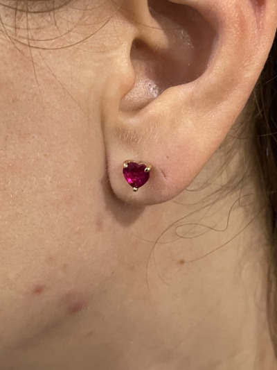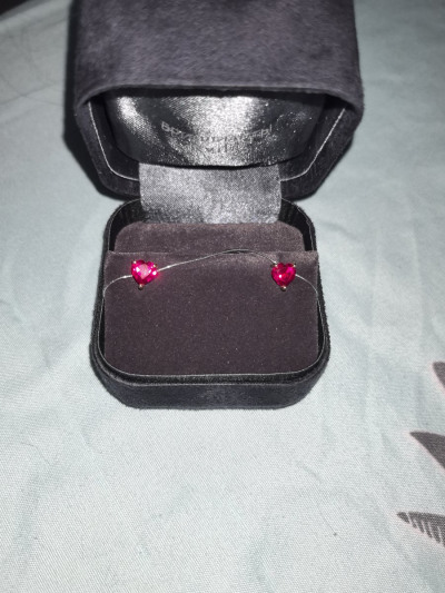 Минималистичные сережки с рубином, хотела именно с рубином и полный комплект, конечно пусеты для меня неудобные, но затестим и проверим Главное что полный комплект