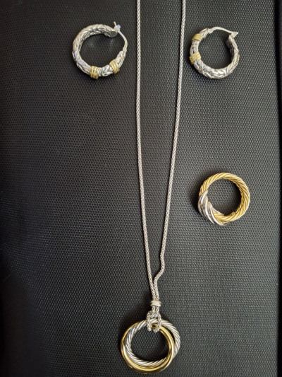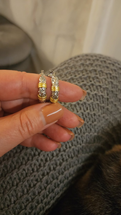 Великолепные серьги из комбинированного серебра.покупала в комплекте с подвеской.позднее было приобретено кольцо.очень люблю этот гарнитур.итальянский стиль подходит под разные стили в одежде.к покупке рекомендую.выглядит дорого.услышала много комплиментов относительно красоты изделий.