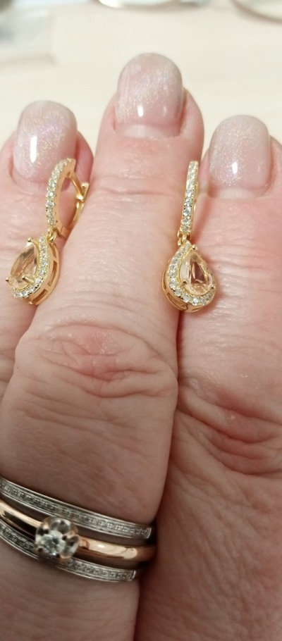 Очень красивые серёжки. В живую играют ярко, красиво переливаются. Аккуратные в ушке. 5 из 5
