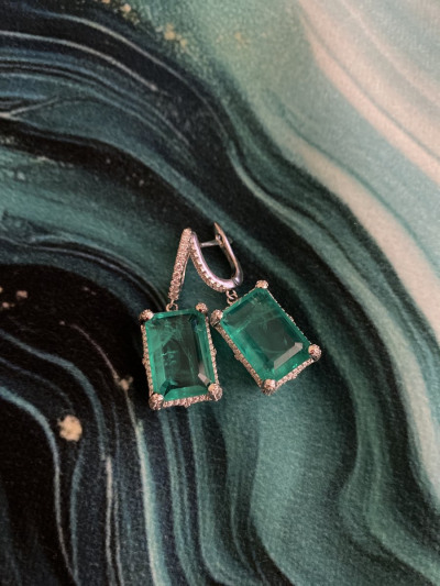 Серебряные серьги с зелёным кварцем. Крутые! Яркие, стильные. Рекомендую