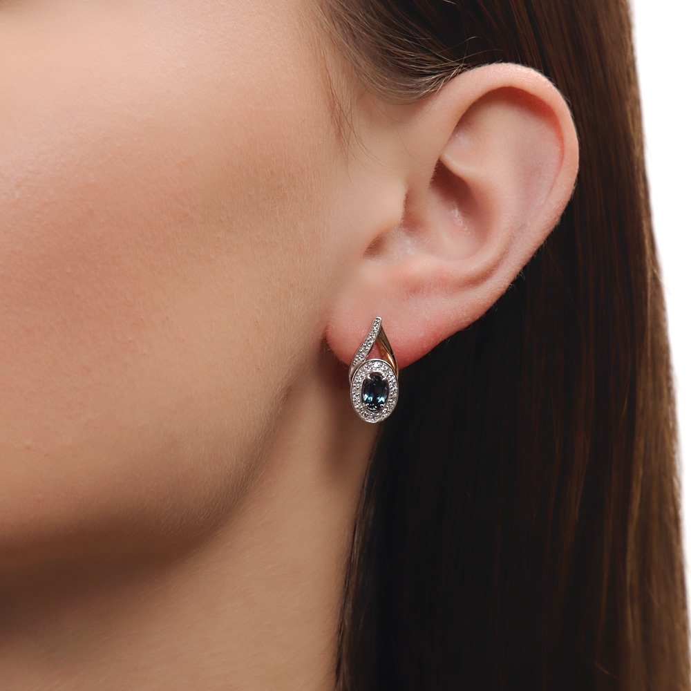 Золотые серьги с бриллиантами природными и топазами природными