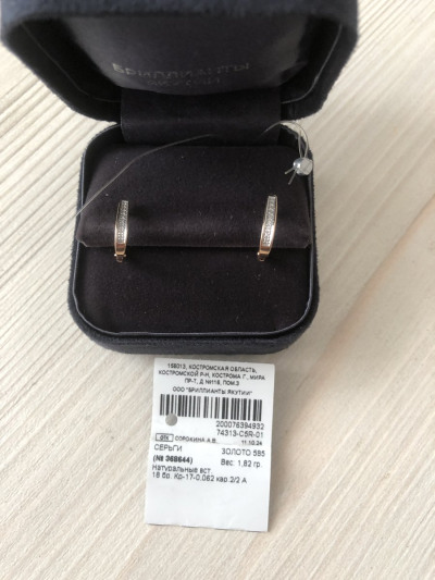 Золотые серьги с бриллиантами природными