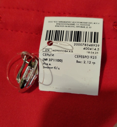 Серьги понравились своей простотой, камушек втоплен в металл, на свету играет. Костромские ювелиры радуют своими изделиями.