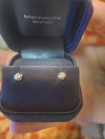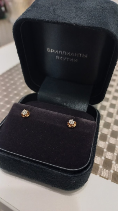 Серьги с 2 бриллиантами природными, 0.02 карат, огранка круг 57 граней, цвет 4, чистота 5, тип огранки А;