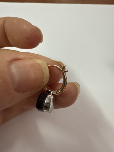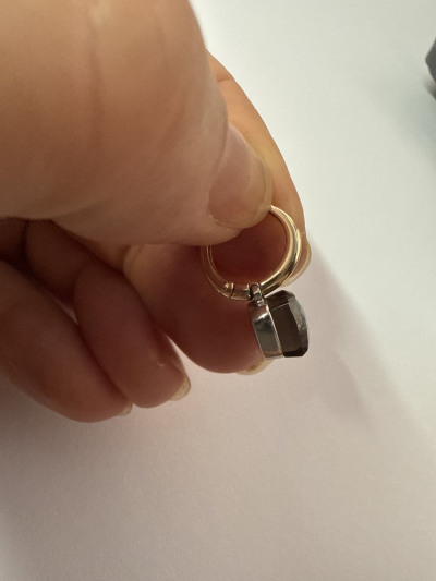 Камень темный , по весу не сильно тяжелые но и не легкие . Мочка не отвечает от них