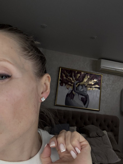 Сережки аккуратные, невесомые, смотрятся хорошо, не дешево. Длина дужки удобная, винт очень маленький, но держит хорошо.