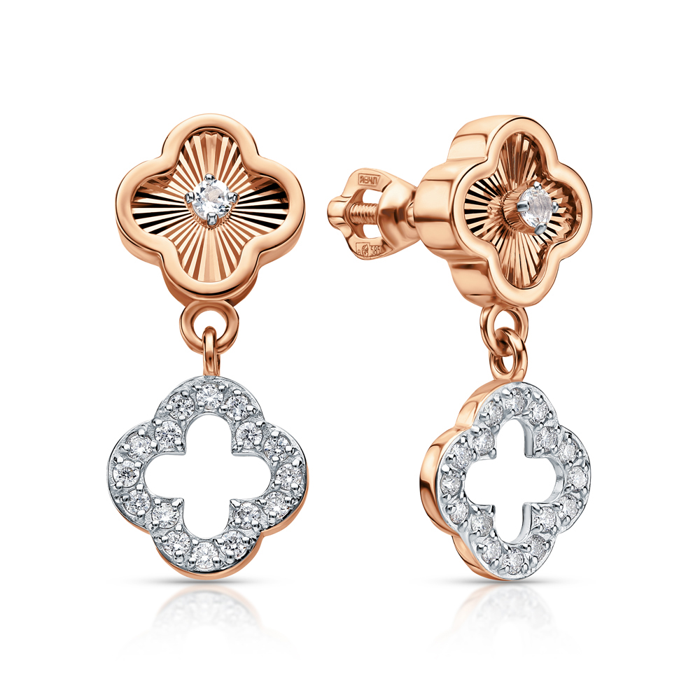 Серьги с 32 бриллиантами природными, 0.24 карат, огранка круг 57 граней, цвет 3, чистота 6, тип огранки А;