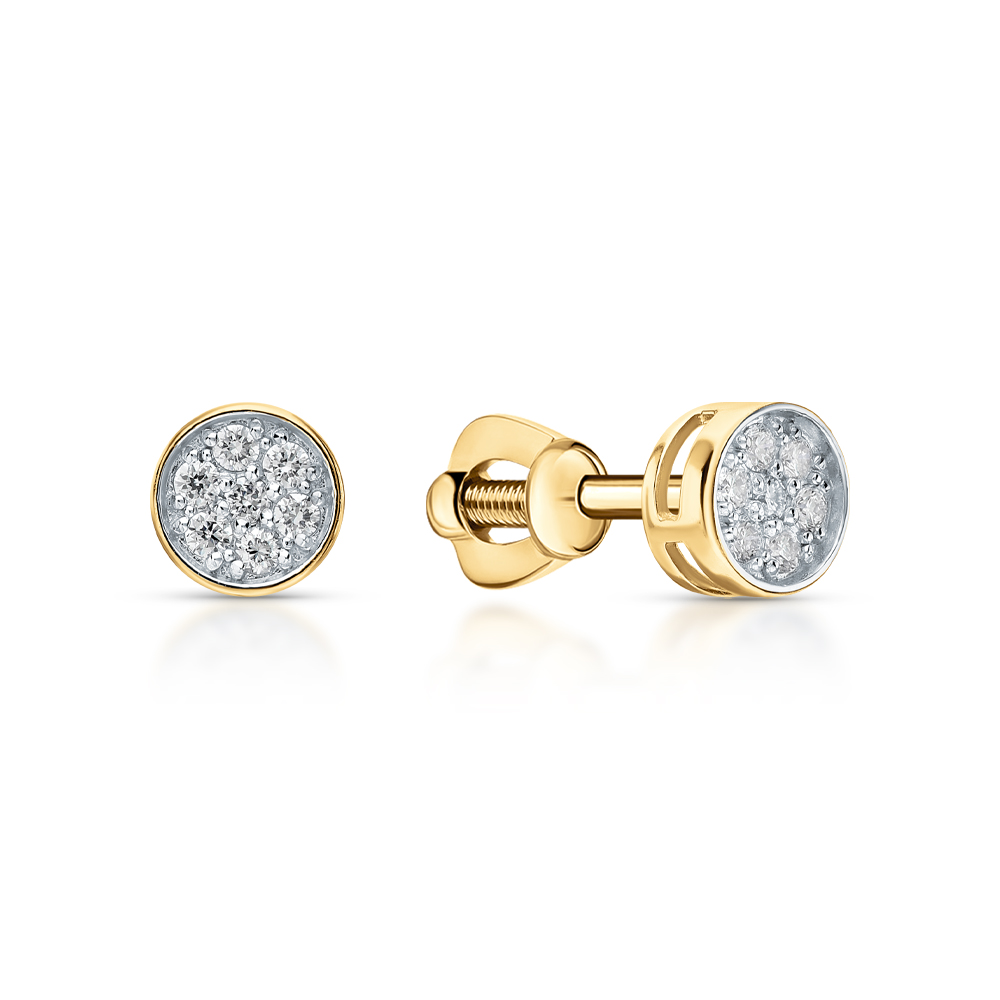 Серьги с 14 бриллиантами природными, 0.12 карат, огранка круг 57 граней, цвет 3, чистота 6, тип огранки А;