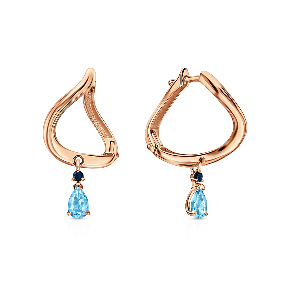 Золотые серьги с топазами природными и сапфирами природными