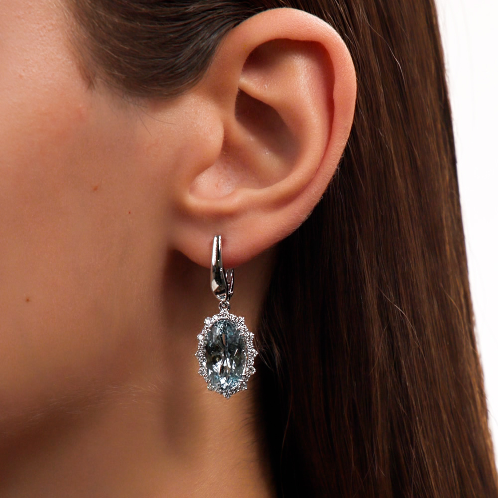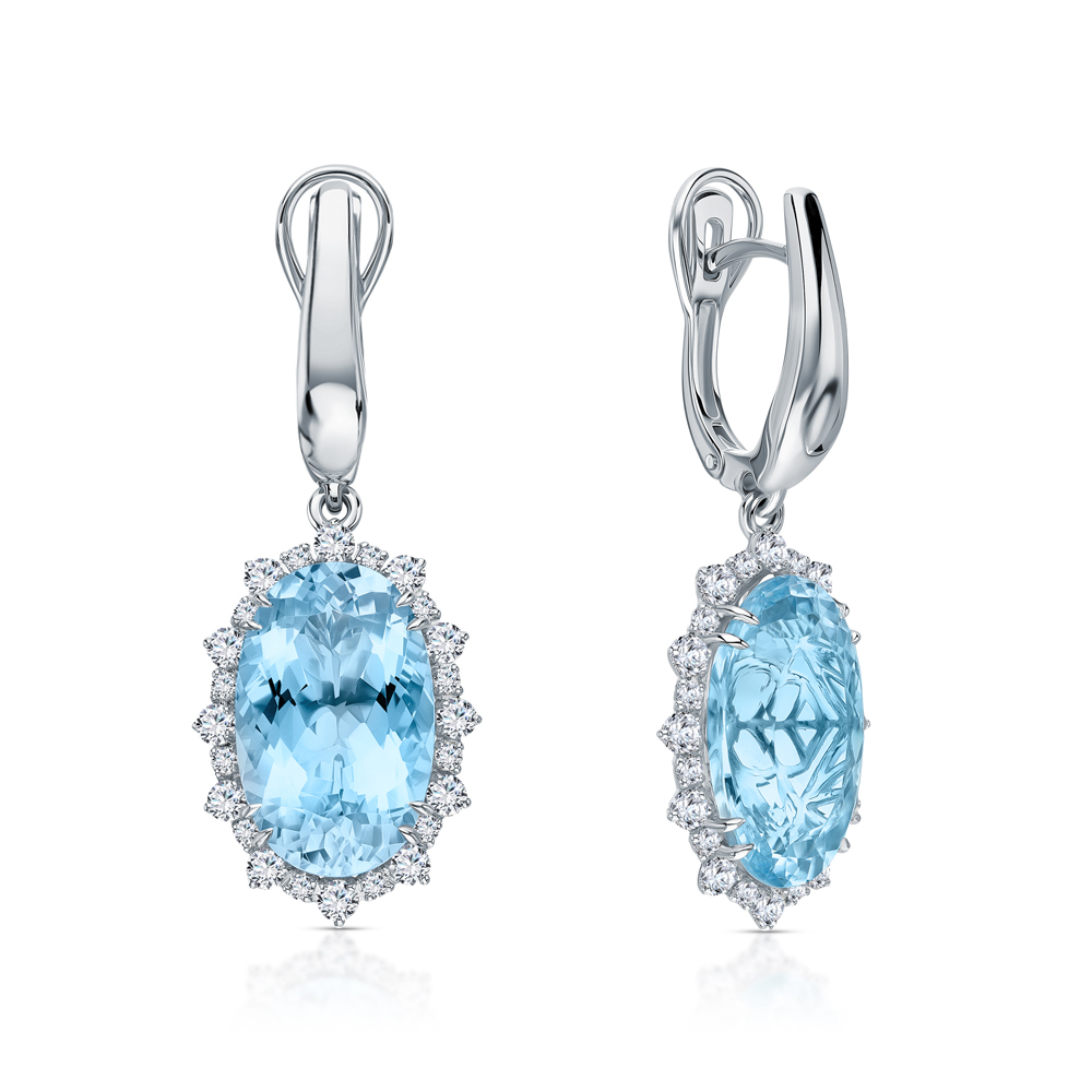 Золотые серьги с бриллиантами природными и аквамаринами природными