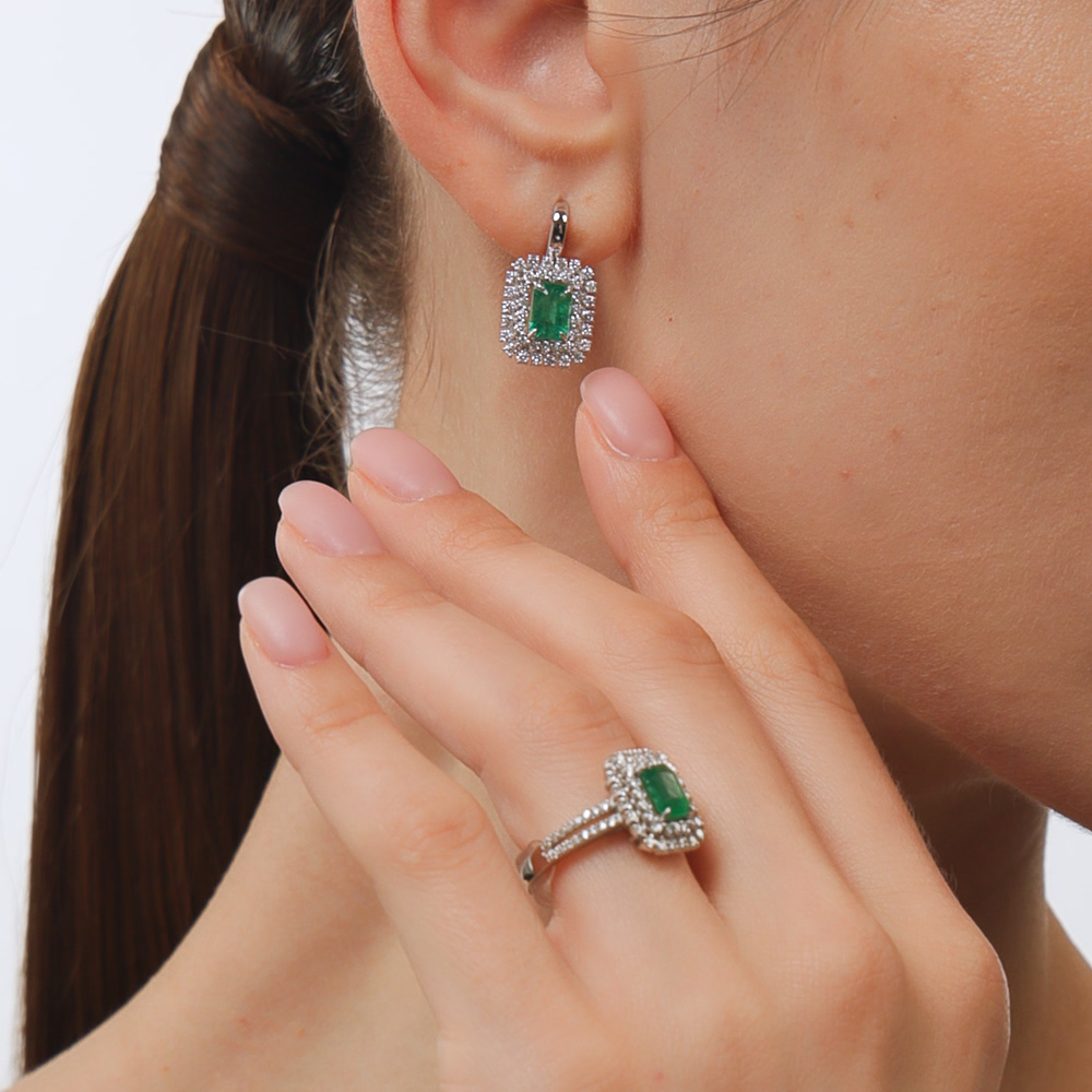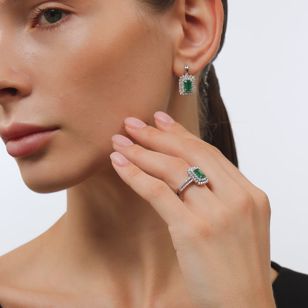 2 изумрудами природными, 1.68 карат, цвет 3, чистота 3, тип огранки Б;
