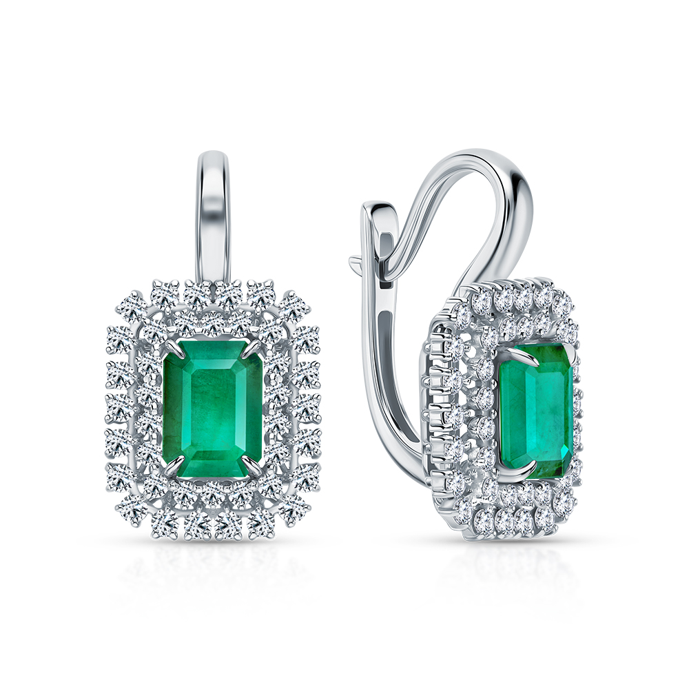 Золотые серьги с бриллиантами природными и изумрудами природными