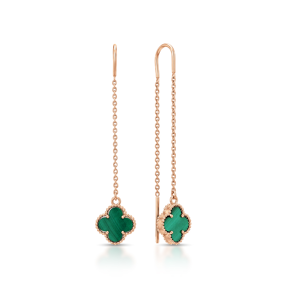 В редких случаях характеристики украшения или упаковка могут иметь отличия от представленных на фото или в описании.Серьги с 2 малахитами, 2.2 карат, огранка четырехлистник;