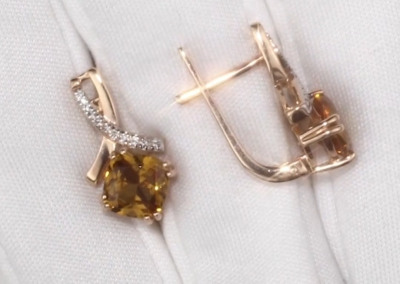 Золотые серьги с бриллиантами природными и султанитом природным
