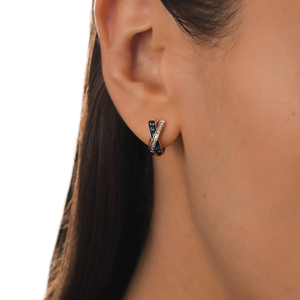 Золотые серьги с бриллиантами природными и сапфирами природными