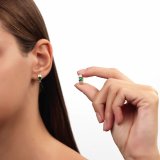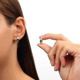 Стильная геометрия. Серьги выполнены из желтого золота с крупными изумрудами и бриллиантами станут ярким акцентом в элегантном образе, Занижение штифта у серег способствует наиболее комфортной посадке на мочке уха.