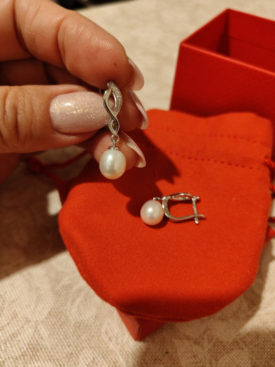 Люблю жемчуг, хотя это по знаку Зодиака, дате рождения и т.д. он мне вроде бы и не подходит. Но, люблю и ношу! Есть ожерелье с жемчугом натуральным, есть подвеска с крупной жемчужиной, были серьги - потеряла одну. Решила купить под подвеску. Остановилась на этих. Серьги замечательные, жемчужина крупная. Влюбилась в них.