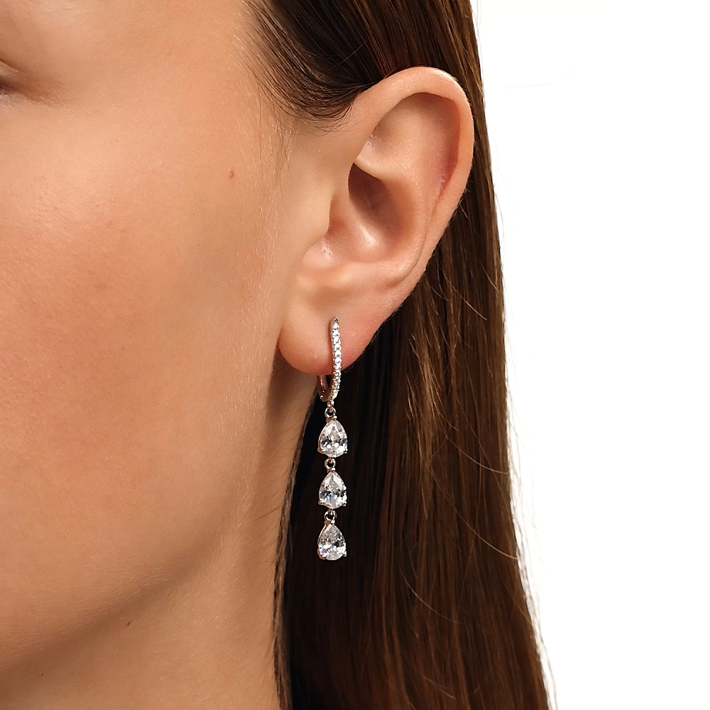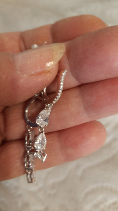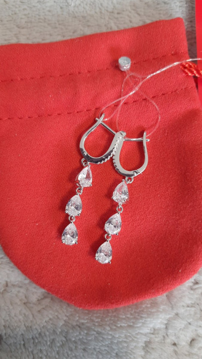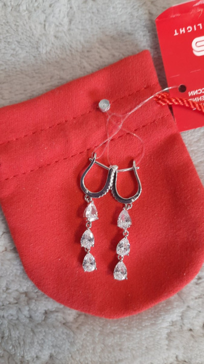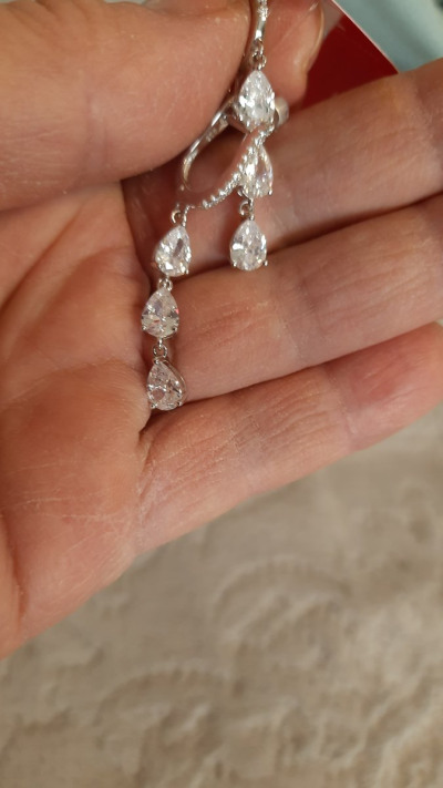 Купила серьги на день рождения . Капли фианитов изящно стекают , переливаются . Подходят к вечернему платью .