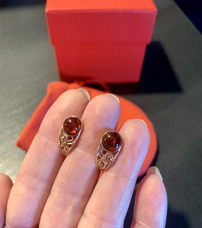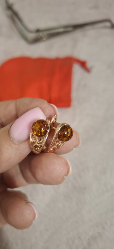 Прекрасные серьги,купила на подарок маме,не отличить от золотых ,янтарь красивый.