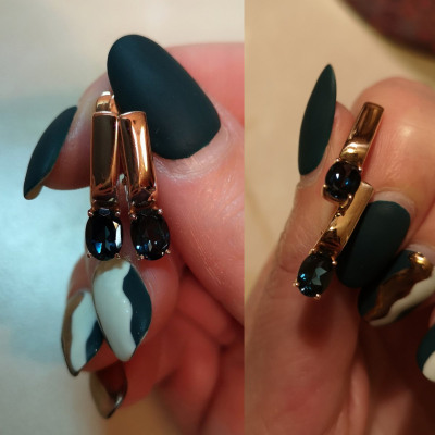 Давно хотела серьги с топазом. Пересмотрела очень много вариантов. На эти наткнулась случайно. Тёмный топаз заворожил с первого взгляда. Локоничный дизайн, ни чего лишнего, как я люблю. Очень аккуратно смотрятся, не оттягивпют ушко. Одним словом :я довольна.