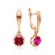Серьги с 2 рубинами синтетическими, 2.13 карат, тип огранки В;