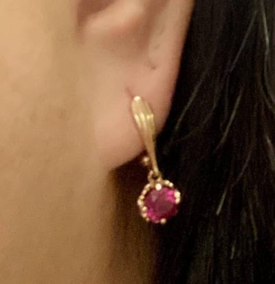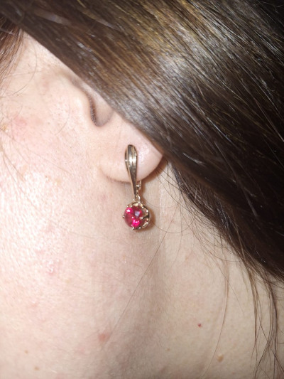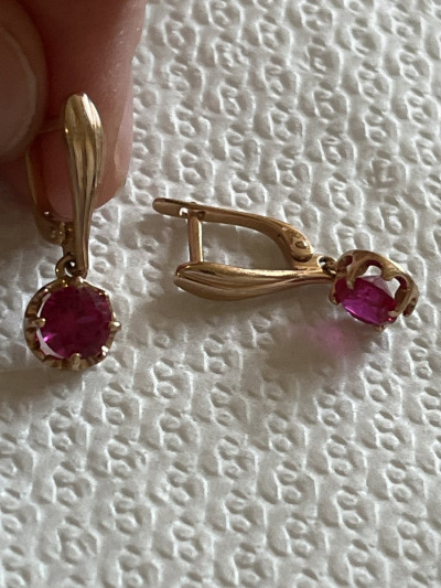 Серьги хорошие, выглядят недёшево, камень очень яркий малиновый. Застёжка крепкая.