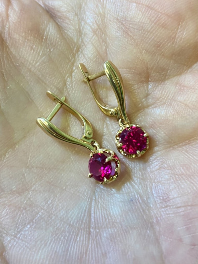 Золотые серьги с рубинами природными