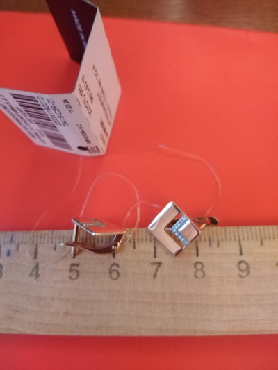 Серьги с 18 бриллиантами природными, 0.04 карат, огранка круг 17 граней, цвет 2, чистота 2, тип огранки А;