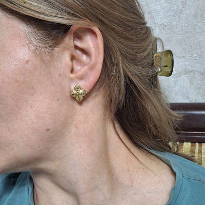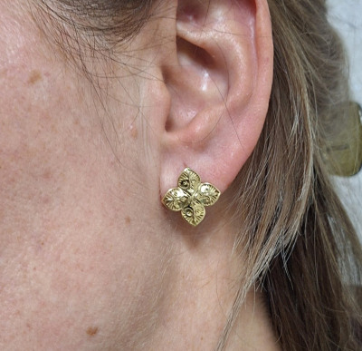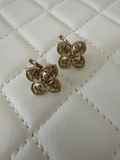 Дизайнерские серьги с необычным орнаментом в восточном стиле. Увесистые, отличная замена надоедливых клевер от известных фирм. И главное-целиком из золота