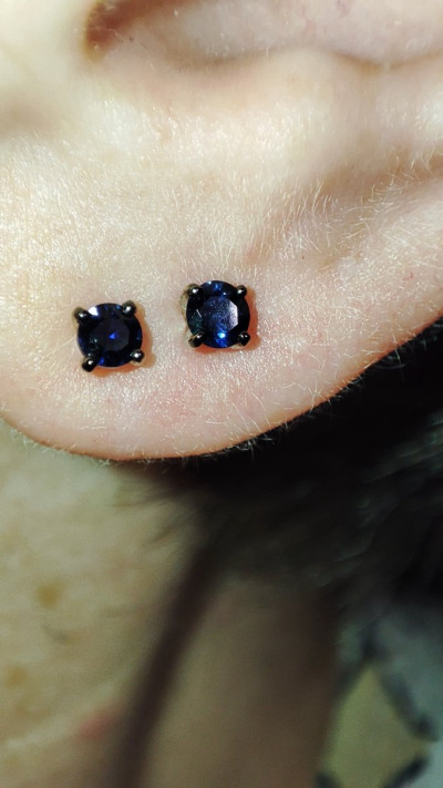 Выбирала между этими пусетами и аналогичными, покрупнее, но вместе на одном ухе эти показались, что выглядят аккуратнее😊👌 Камушки очень красивые, на свету красиво играют, становятся светло- васильковыми😍 удобные, совершенно не ощутимые на ушке 👍 застёжка с резьбой очень надёжная, не потеряются, это точно! 👌 я просто влюблена в сапфир и в планах купить всё же пусеты с камушком покрупнее 👍👍👍😍💎