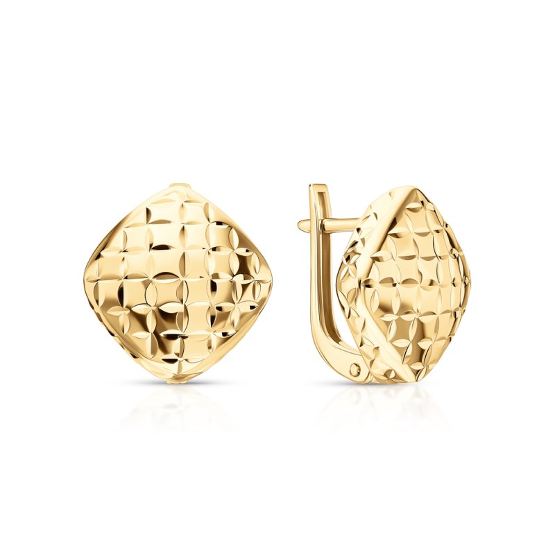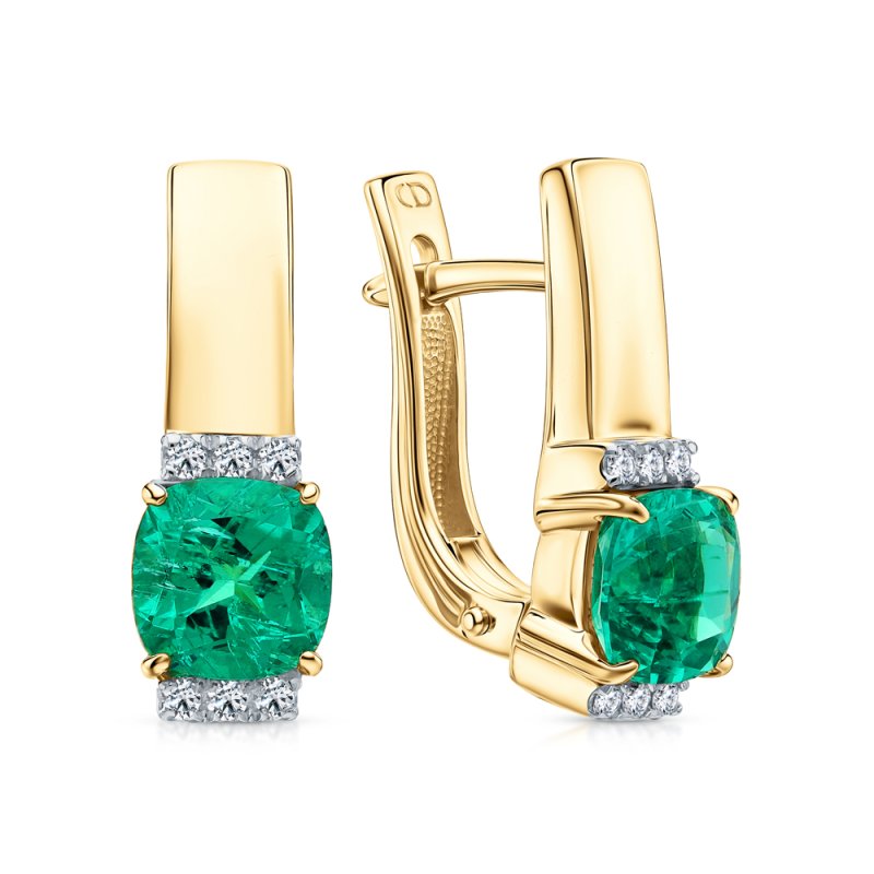 Серьги с 2 бриллиантами природными, 0.08 карат, огранка круг 57 граней, цвет 3, чистота 5, тип огранки А; 12 бриллиантами природными, 0.13 карат, огранка круг 57 граней, цвет 3, чистота 5, тип огранки А; 12 бриллиантами природными, 0.02 карат, огранка круг 57 граней, цвет 3, чистота 5, тип огранки А; Желтое золото 585 пробы.