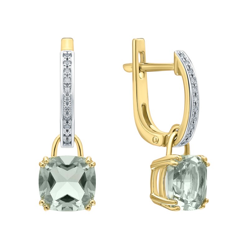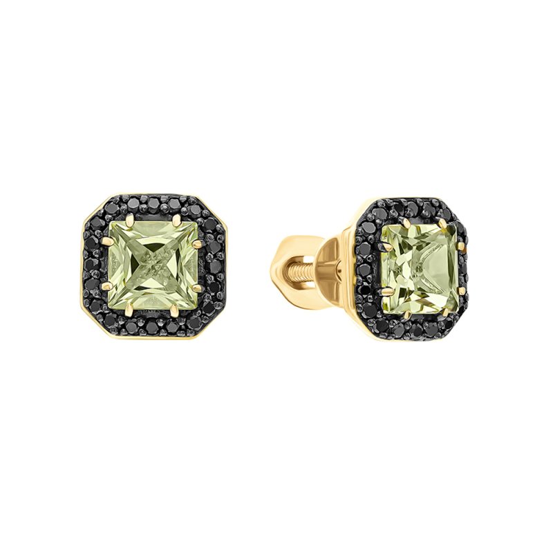 Серьги с 14 бриллиантами природными, 0.04 карат, огранка круг 17 граней, цвет 2, чистота 2, тип огранки Б; 14 бриллиантами природными, 0.02 карат, огранка круг 17 граней, цвет 2, чистота 2, тип огранки Б; 2 кварцами лимонными природными, 1.31 карат; Желтое золото 585 пробы.