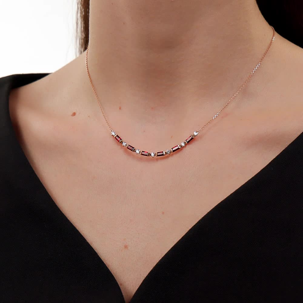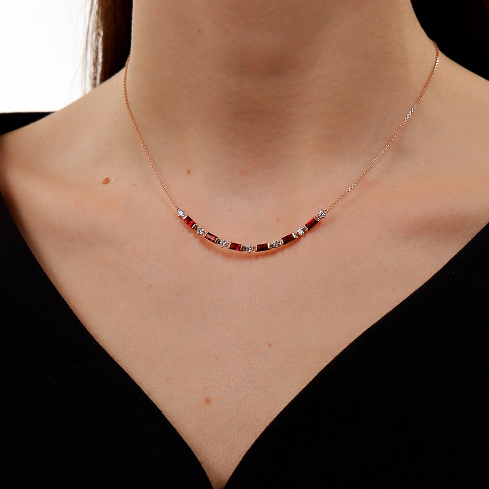 Золотое шейное украшение с бриллиантами природными и гранатами природными