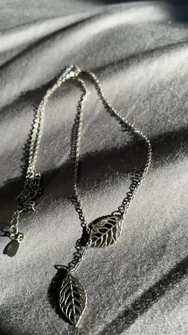 НеБольшое воздушное колье, можно носить с чокером например с бабочкой, красиво и ненавязчиво С двумя листиками, размер цепочки регулируется