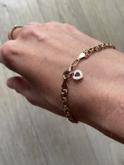 Купила себе в подарок супер подвеску в виде сердца, очень миниатюрная и красивая, выглядит прекрасно. Браслет на руке заиграл другими красками.