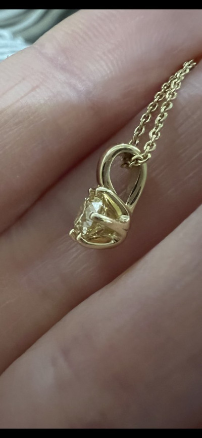Подвеска с 1 бриллиантом желтым природным, 0.5 карат, огранка круг 57 граней, цвет 8-5, чистота 7а, тип огранки А;