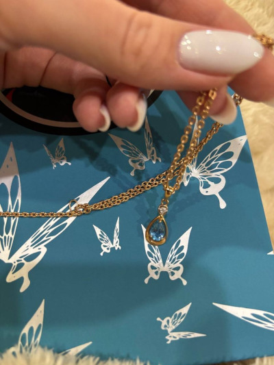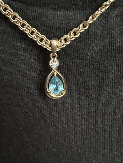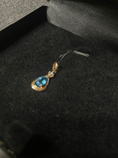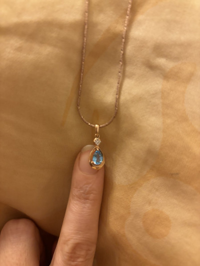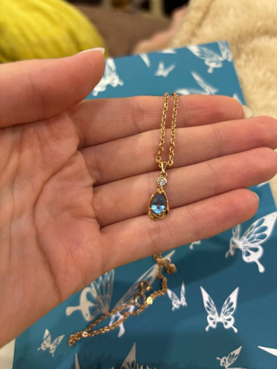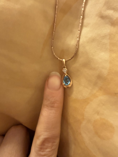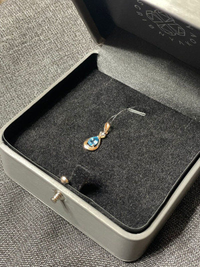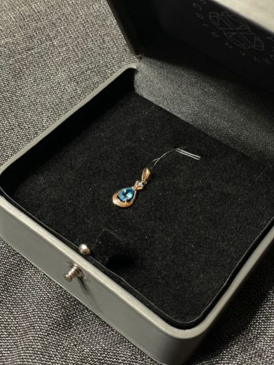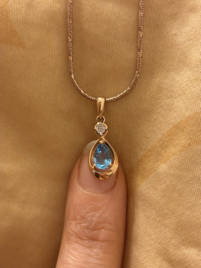 Топаз и Бриллиантик красиво переливаются на солнце. Топаз будто слеза какого-то божества. Оригинальный дизайн в виде капли и в то же время бесконечности. Нежная подвеска, в носке комфортная, не цепляется. Советую.