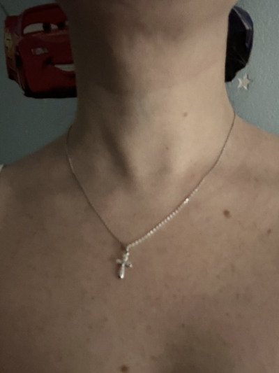 Покупала на подарок. Крестик маленький, но очень красивый. Бриллиант крошечный. Выглядит очень достойно, фактурно, обтекаемо. Думаю, что будет удобен на каждый день на тонкую цепочку. Спасибо магазину, за скидки и акции.